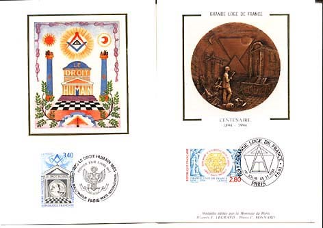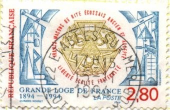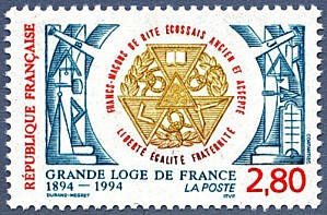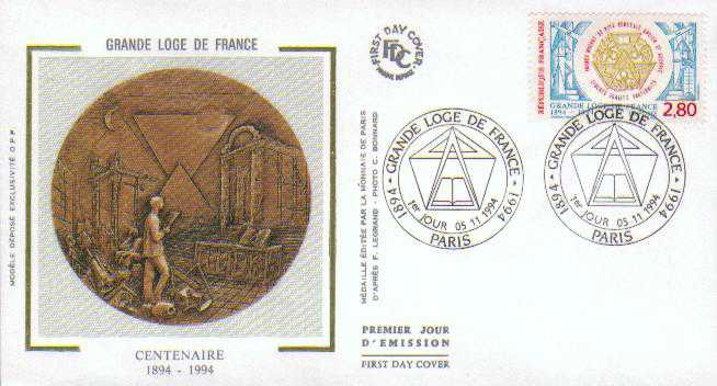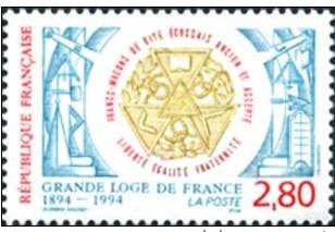 Timbre centenaire de la grande Loge de France 1994 Premier jour