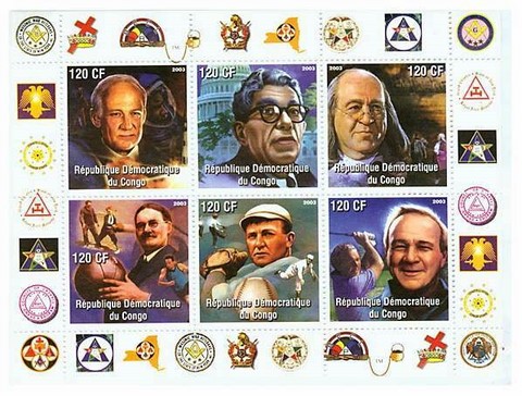 Des timbres à thème maçonnique (ou anti-maçonnique !) glanés ici et là, sur Internet ou chez des amis collectionneurs.
